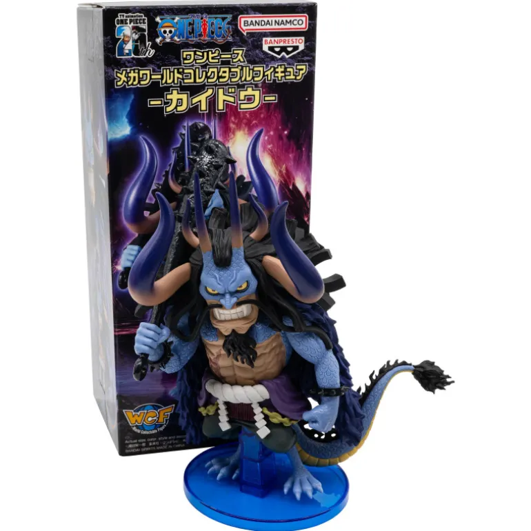 Banpresto presenta la figura de Kaido del popular manga y anime One Piece Mega World Collectable. Esta figura está hecha en PVC mide unos 13 cm de alto e incluye una base soporte especial para exposición.