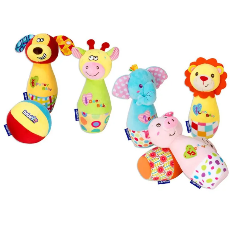 Estos bolos blanditos favorecerán el gateo de tu bebé y sus primeros movimientos autónomos. También fortalecerá sus músculos mientras estimula todos sus sentidos. Cada bolo es un animalito diferente… ¡agítalos y descubre su sonido cascabel!