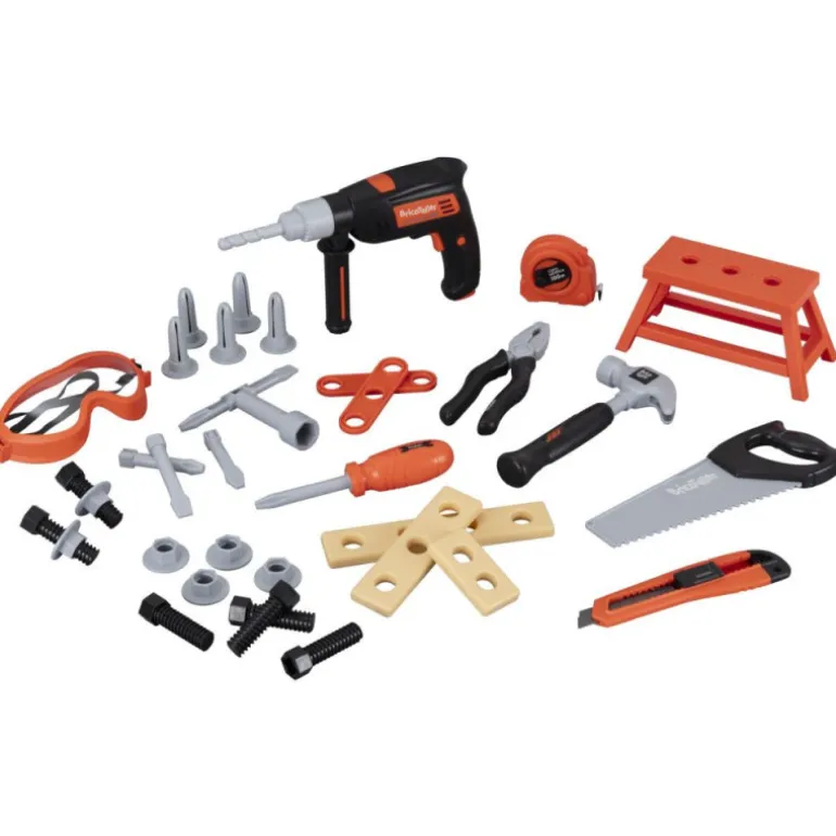 Súper maletín de herramientas que incluye 40 piezas de bricolaje, un taladro eléctrco con puntas intercambiables, gafas de protección, cúter, sierra, metro y muchos más accesorios. Todo está diseñado para reproducir roles adultos relacionados con el bricolaje. Su tamaño permite guardar y organizar todas las herramientas de forma cómoda para transportarlas. Desarrolla la imaginación, potencia el lenguaje y ejercita la habilidad manual mientras disfrutan creando y reparando.