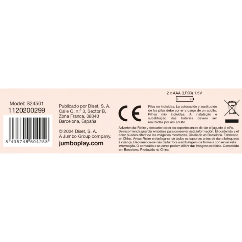 Retire y descarte todos los soportes antes de dar el juguete al niño. Se recomienda guardar el envase para conservar esta información. El contenido y los colores pueden variar de lo mostrado en las fotografías. Diseñado en Barcelona. Fabricado en China.