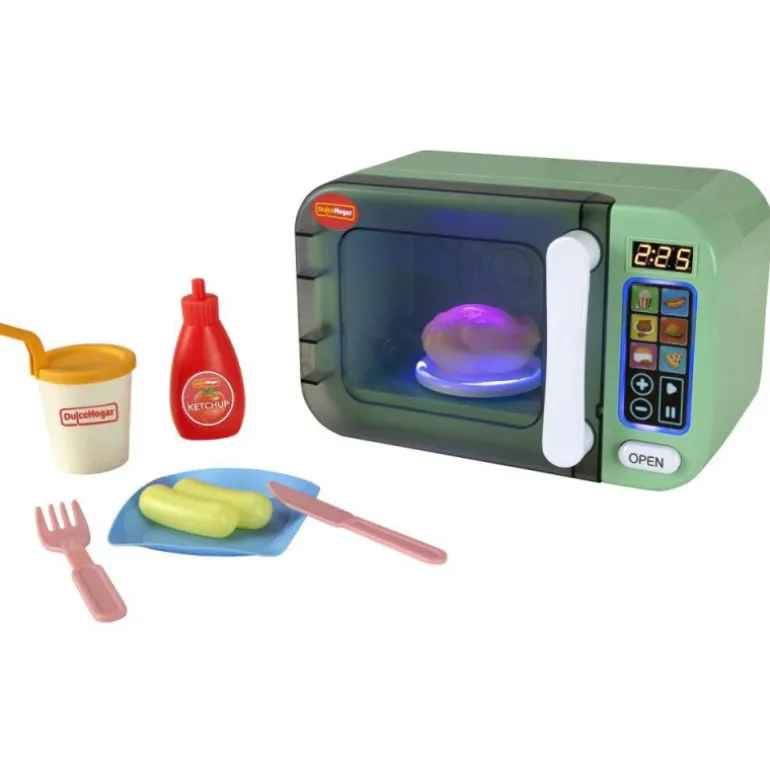 ¡CALIENTA TUS COMIDAS AL INSTANTE! Selecciona el programa de cocción de tu comida preferida, ajusta el tiempo y estará lista para comer. Además el pollo y las salchichas ¡cambian de color!.Con diferentes funciones que permitirán a niños y niñas desarrollar sus habilidades manuales, su imaginación y a favorecer la reproducción de roles adultos al imitar situaciones diarias.