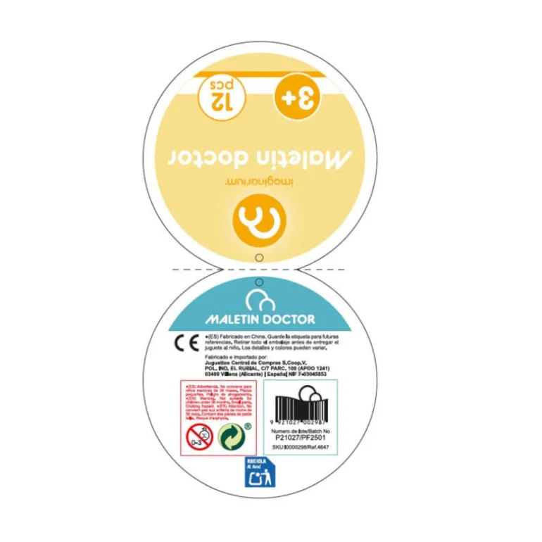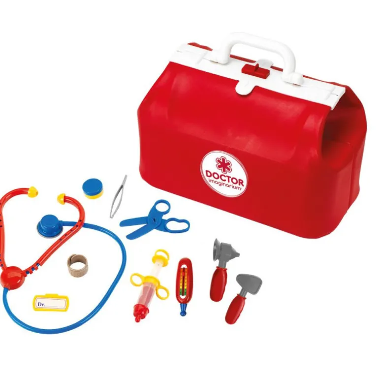 Con asa, guarda dentro el instrumental de juguete, seguro para los niños: termómetro clínico, martillo de reflejos, espejo de oído, fonendoscopio y otros componentes.
