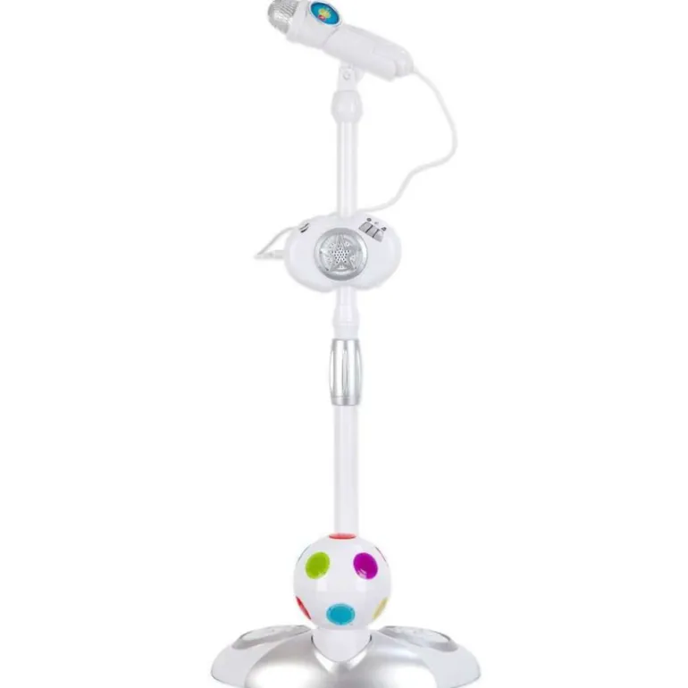Con bola de luces intermitentes, melodías y efectos de aplausos que parecerá que estáis en un concierto. Además se puede conectar a un equipo de audio y regular la altura para cada ocasión. Bola de discoteca con efectos de luz.