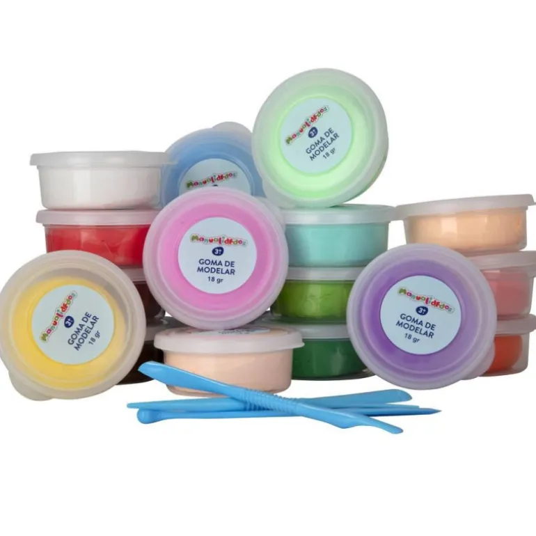 · 18 botes de goma de modelar de colores.