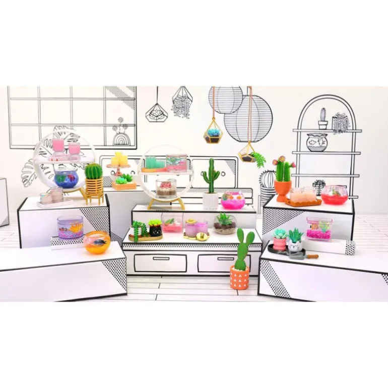 · COLECCIÓNALOS TODOS: La diversión no acaba aquí, los mini accesorios y envases son igual de bonitos y coleccionables desde miniaturas de macetas hasta grava para acuarios, cera falsa para velas y mucho más.