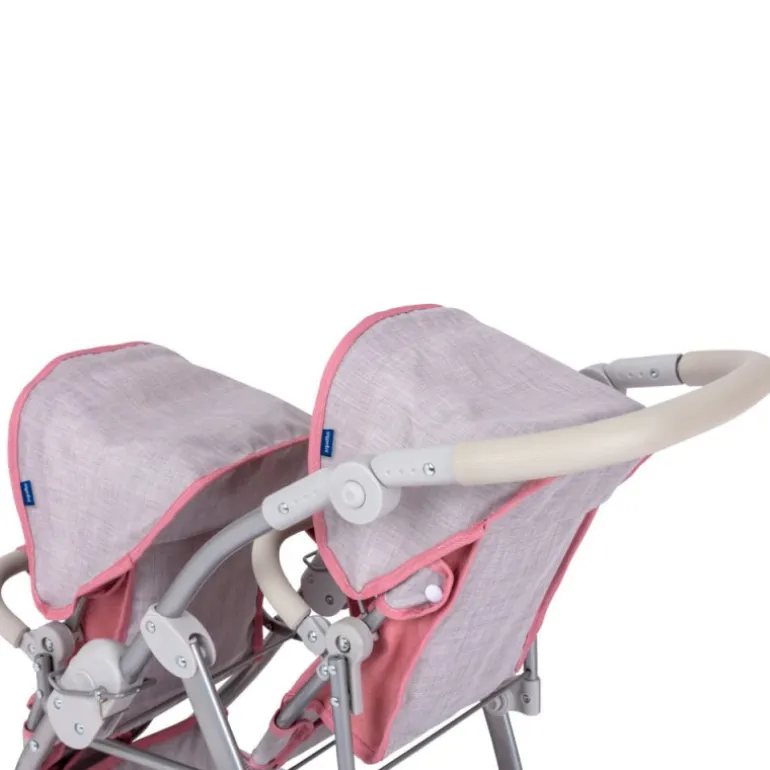 A tus bebés Mimittos les gusta ir juntos a todas partes en esta silla de paseo gemelar plegable. Las ruedas giratorias te permitirán un manejo ágil y cómodo. Además el manillar es multiposición y acolchado. Sus sillas pueden regularse en diferentes posiciones. Incluye capotas abatibles, arnés de seguridad para cada silla, bandeja inferior y bolso. Favorece la motricidad global, la imaginación y el lenguaje al reproducir roles adultos relacionados con el cuidado de los bebés.