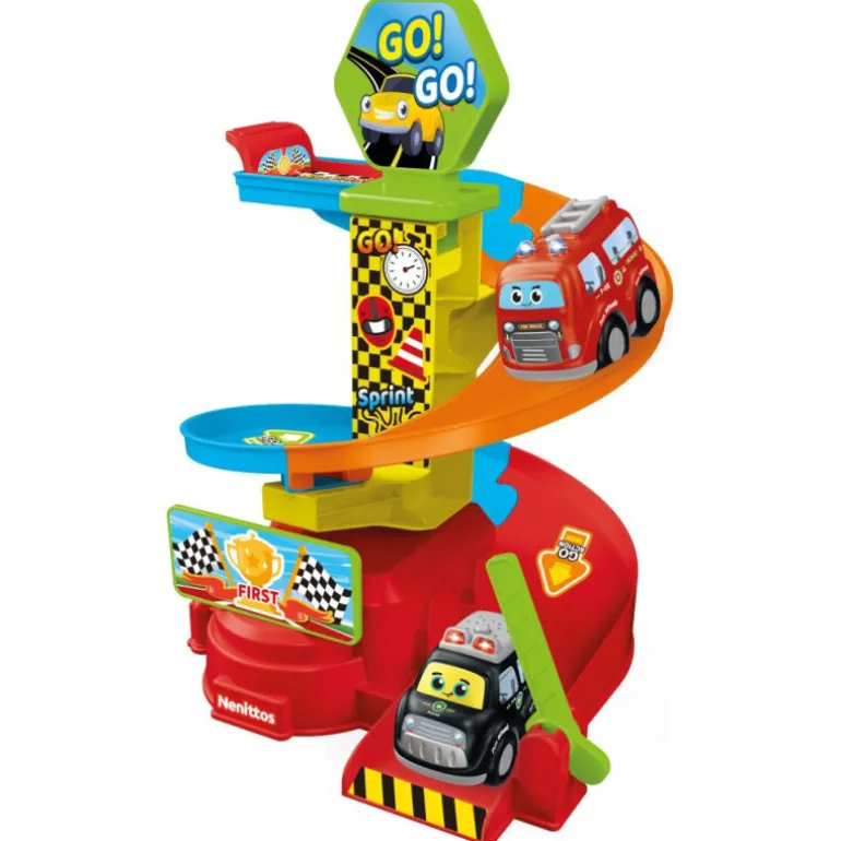 Pista con rampa en espiral, lanzader y barrera, ideal para deslizar el vehículo a gran velocidad. Incluye 1 vehículo con luz, sonido y rueda libre. Favorece la imaginacióny el lenguaje mientras se recrean historias. Ejercita la habilidad manual a través del montaje y el manejo del vehículo.