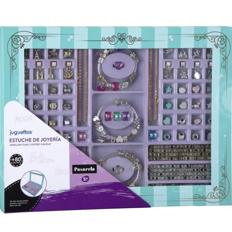 Con este set de joyería podrás hacer tus propias pulseras y collares. Utiliza el estuche para guardar y exponer tus joyas.