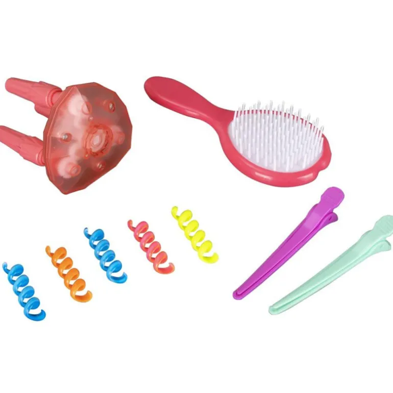 Cambia el cabezal a tu trenzador para conseguir peinados alucinantes y decora tu pelo fácilmente con el aplicador de cuentas. Niños y niñas podrán imaginar que son estilistas a la vez que desarrollarán el gusto estético, la creatividad y el juego compartido mientras se reproducen roles adultos relacionados con el oficio de la peluquería.