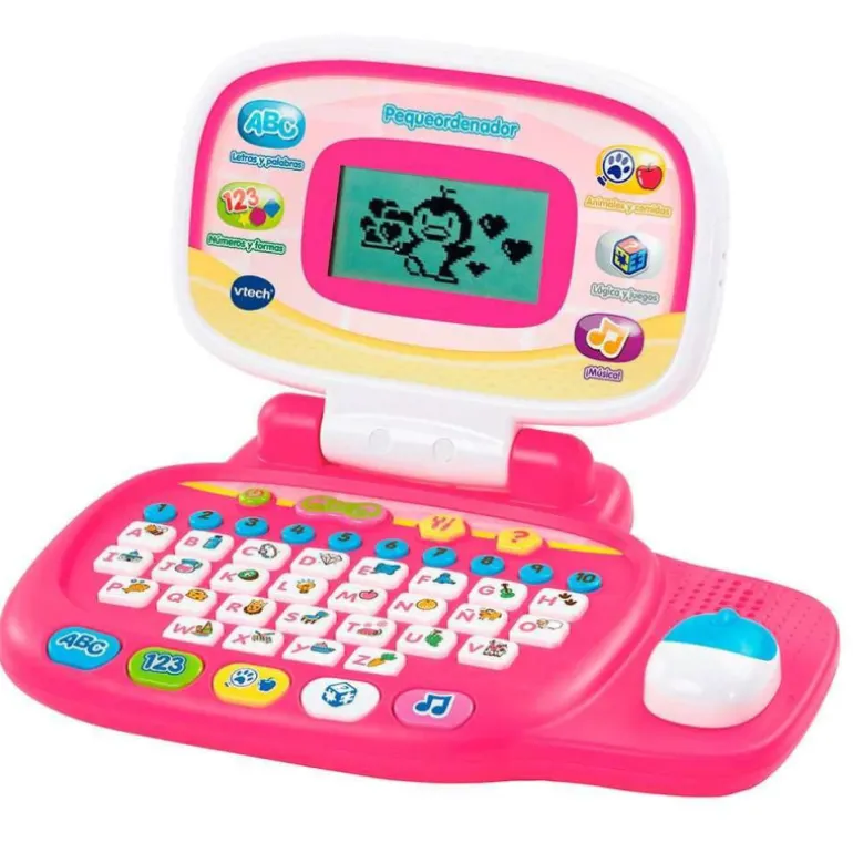 Tiene un teclado ABC con las 27 letras y los números del 1 al 10, e incluye 20 actividades repartidas en cinco categorías: letras, números, música, animales y comida, lógica y música.