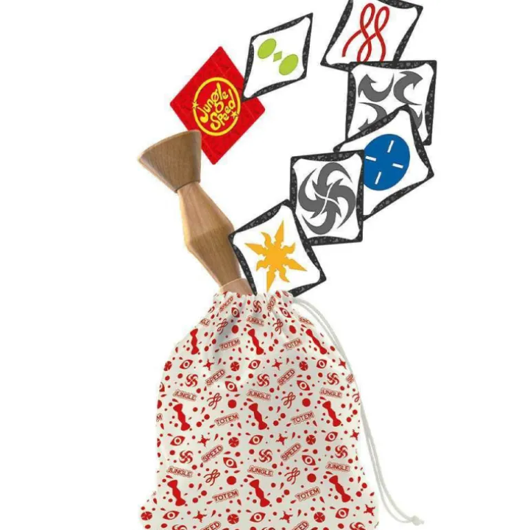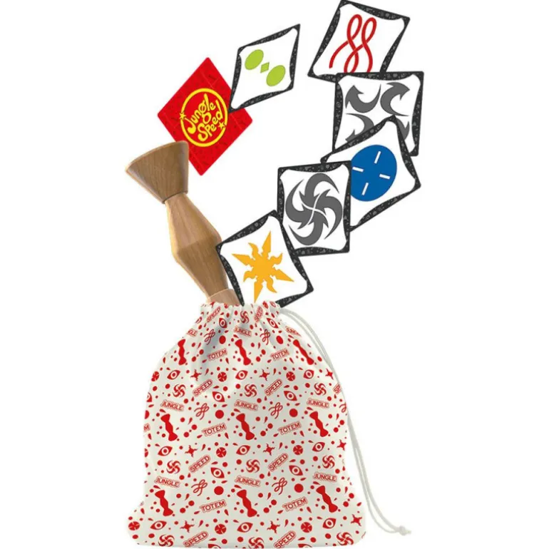 Jungle Speed fue inventado hace alrededor de 3000 años en la Spidopotamia subtropical por los hombres de la tribu Abulú. Esta étnia se disputaba de esta manera tan divertida las pieles de sus presas, jugando con hojas de eucalipto. Este ritual se transmitió en secreto durante siglos, hasta que Tom y Yako, últimos descendientes Abulús, decidieron revelarlo al mundo.