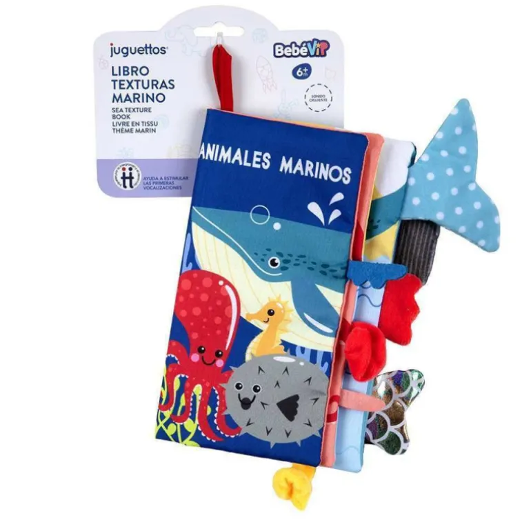 Un libro blandito con diferentes texturas y muchos dibujos de animales que llamarán su atención y podrás nombrar para estimular las primeras vocalizaciones de tu bebé, ya que en esta etapa es fundamental hablarle mucho, repetirle palabras, nombrarle objetos y celebrar juntos sus intentos.