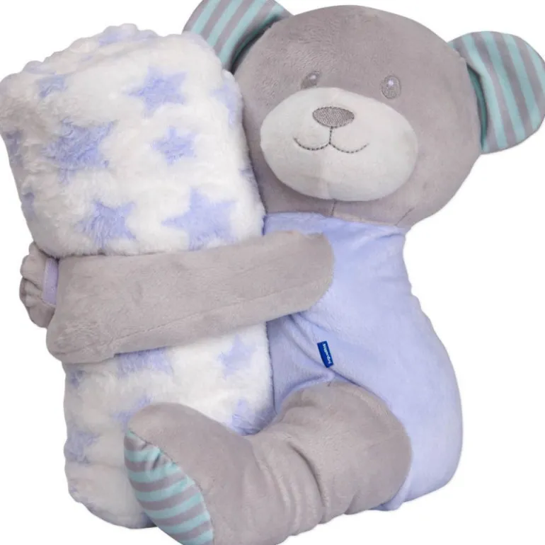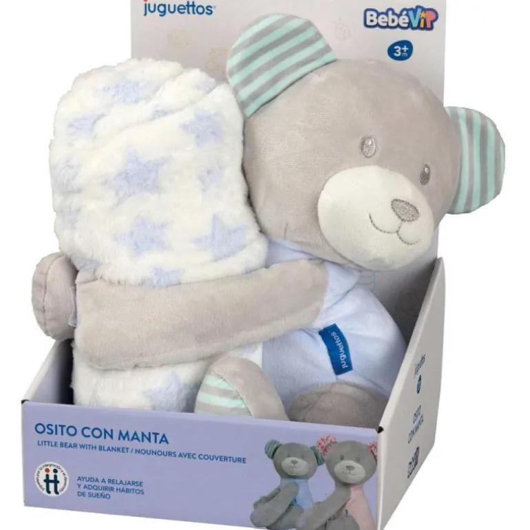 Este osito es blandito y tu bebé podrá abrazarlo para sentirse acompañado y que le resulte más fácil dormir en su cama o cuna. Además incluye una manta muy agradable para arroparle.