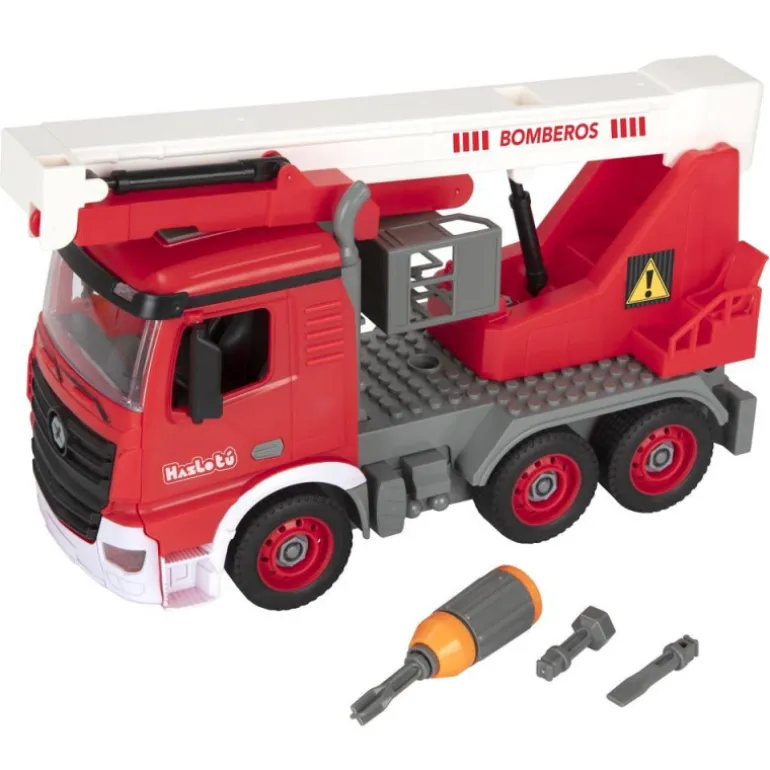 Podrás montar y desmontar tu camión de bomberos, además, incluye un destornillador y 3 puntas intercambiables para que sea más fácil. Con este set de montaje, niños y niñas, podrán diferenciar tamaños, formas y equivalencias, desarrollando su imaginación. Rueda libre. Grúa extensible.