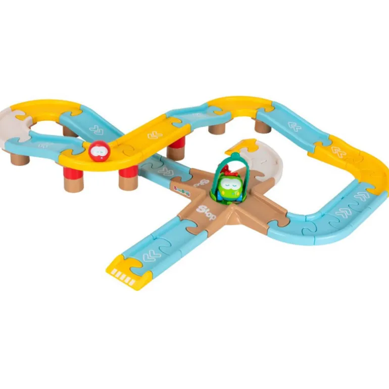 El asa de transporte es a la vez un elevador. Se incluyen dos coches. La altura del garaje con el elevador elevado es de 45 cm.