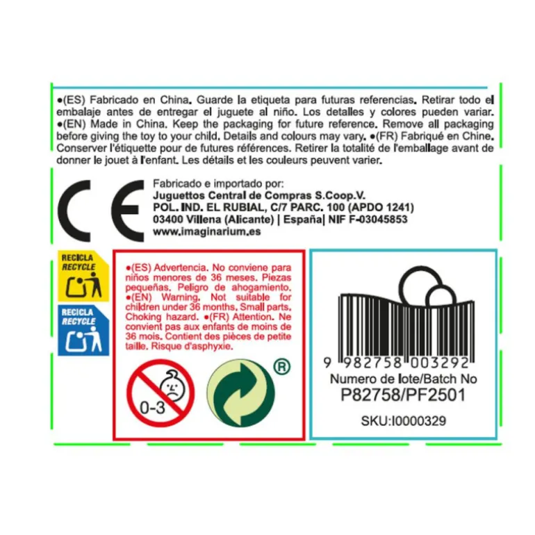 ADVERTENCIAS: No conviene para niños menores de 36 meses. Piezas pequeñas. Peligro de ahogamiento.