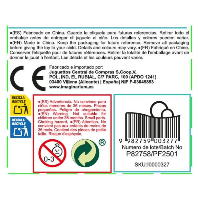 ADVERTENCIAS: No conviene para niños menores de 36 meses. Piezas pequeñas. Peligro de ahogamiento.