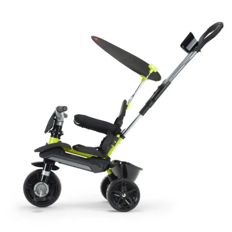 Tanto el chasis como arco de seguridad son metálicos para una mayor resistencia. Dispone de una cubeta trasera porta-objetos y un porta-botellas (botella no incluida). Se fabrica en España y cumple con las medidas de seguridad exigidas por la UE. Peso máximo soportado: 25 kg. Color verde.