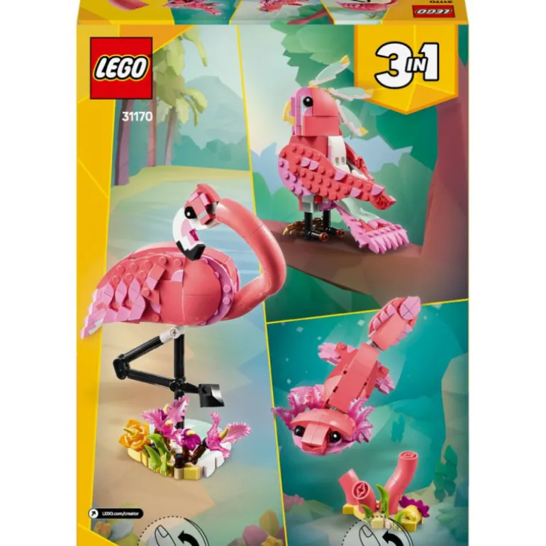 El flamenco rosa de juguete de este set LEGO® mide aproximadamente 23 cm de altura.