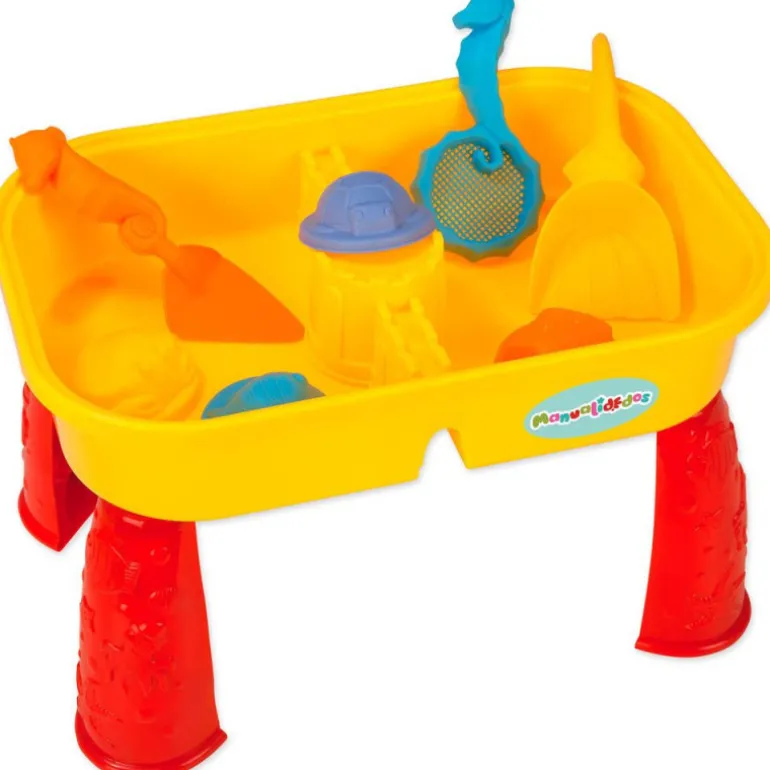 Con esta mesa arenero con 2 áreas de juego podrás crear todo lo que imagines. Incluye 4 moldes y herramientas para que tus creaciones sean mucho más divertidas. Cuando termines de jugar con la arena, guárdalo todo en su interior, pon la tapa y tu arenero se convertirá en mesa. Incluye 4 botes de 70 g arena de regalo con textura suave, fácil de modelar y nunca se seca.. 2 en 1 arenero y mesa.
