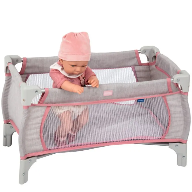 Cuna de viaje para que tu bebé Mimittos pueda descansar en cualquier lugar. Es plegable y tiene una bolsa de transporte para guardarla y llevarla cómodamente. Permite recrear momentos de cuidado y ternura con muñecos bebé. Desarrolla la imaginación y el lenguaje al reproducir roles adultos relacionados con el cuidado de los bebés.