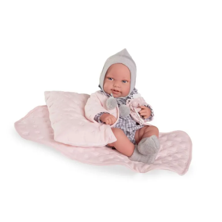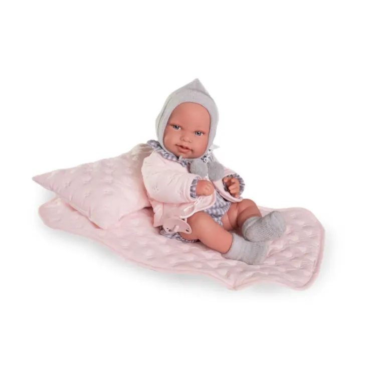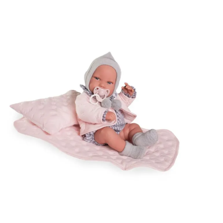 Incluye: capota, pelele, chaqueta, calcetines, cojin, camita y chupete.