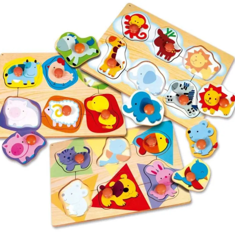 3 encajables de madera con el que tu bebé aprenderá a asociar conceptos y a diferenciar distintas formas.