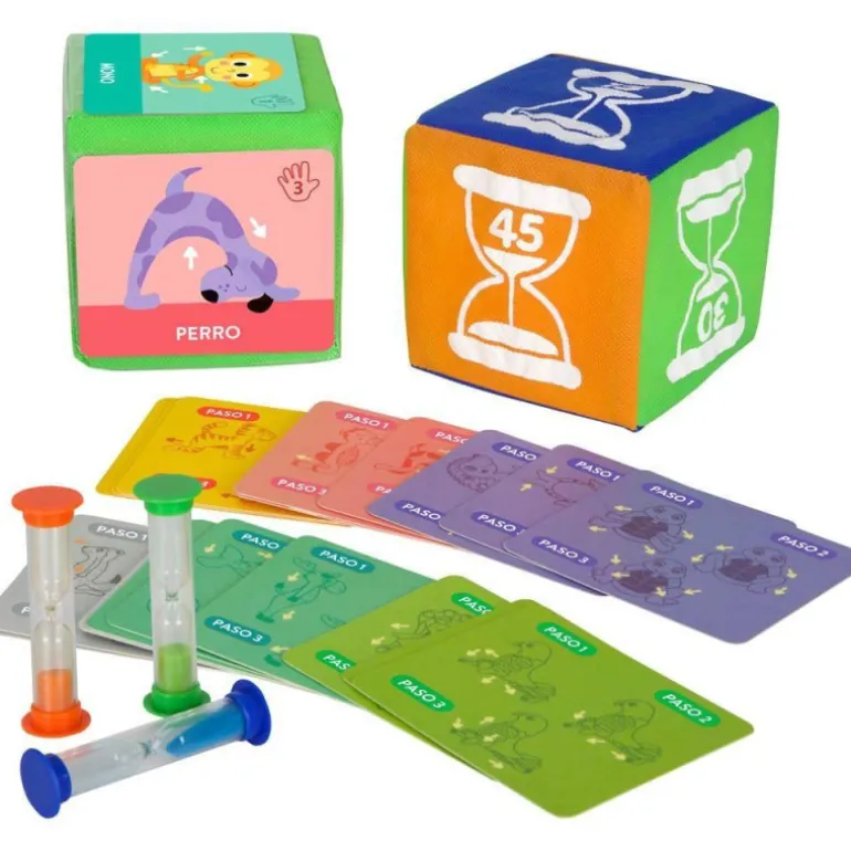 Con este divertido juego, niños y niñas podrán iniciarse en la práctica del yoga imitando posturas de animales y así desarrollar su coordinación de movimientos de grandes grupos musculares del cuerpo.