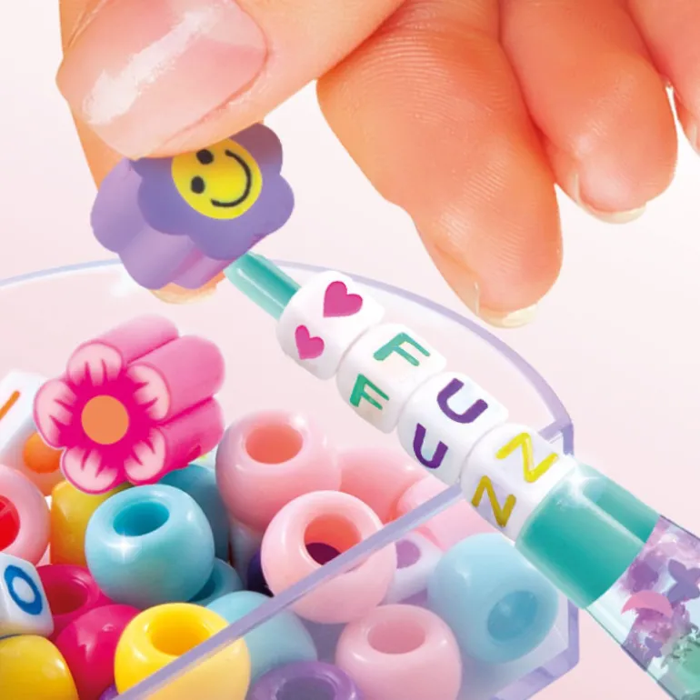 Los más de 40 accesorios incluidos permiten una personalización infinita. Utilice cuentas, gomas de borrar, cinta adhesiva y pegatinas en miniatura para decorar sus creaciones a su gusto.