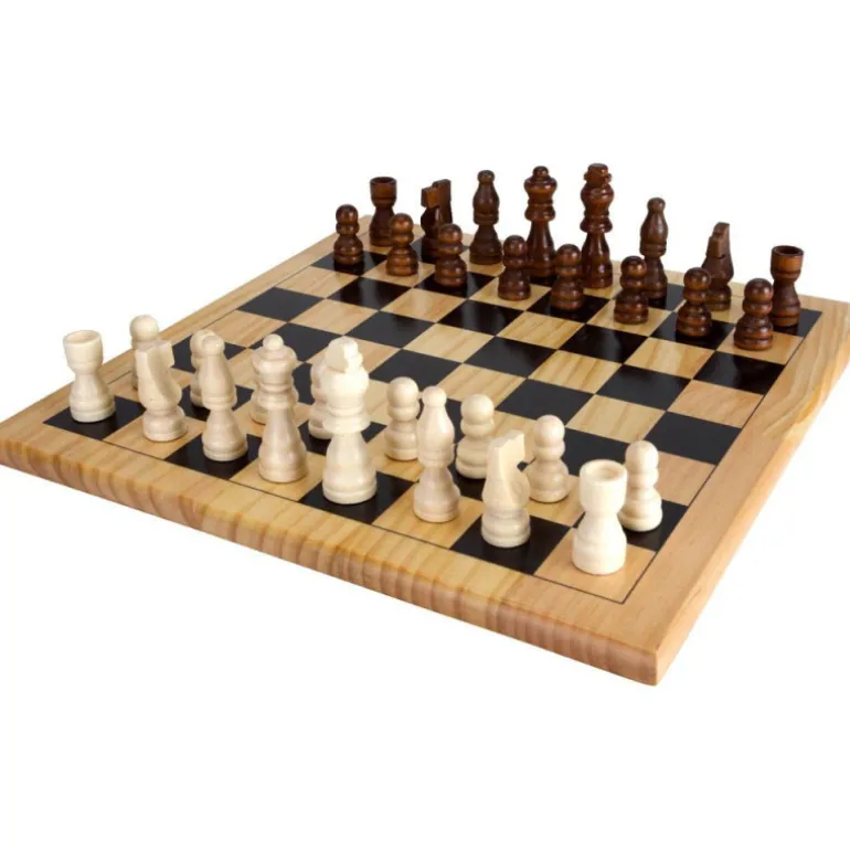 Tablero y figuras de madera.
